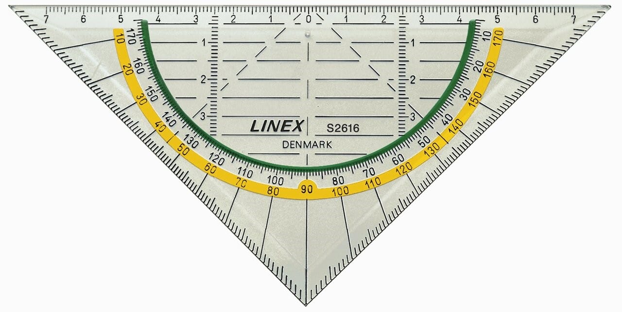 Linex S2616 geometritrekant 16 cm i Linex Super Series med det unike antiskliprinsippet. En gummilist på baksiden griper fatt i den underliggende flaten, og trekanten ligger fast. Kan brukes som linjal, vinkelmåler og tegnetrekant. Med fasett og gul stripe som fremhever den motgående skalaen.