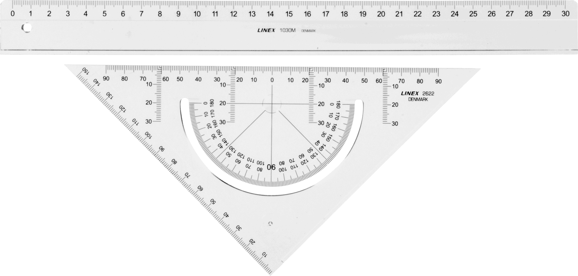 Etui med linjal, 0852 Linex 1030M, og geometritrekant, 0764 Linex 2622.