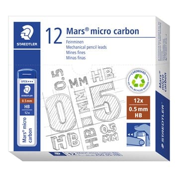 STAEDTLER's Mars® Micro Carbon blypåfyll er et ekstra sterkt bly for trykkblyanter.