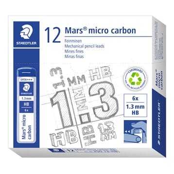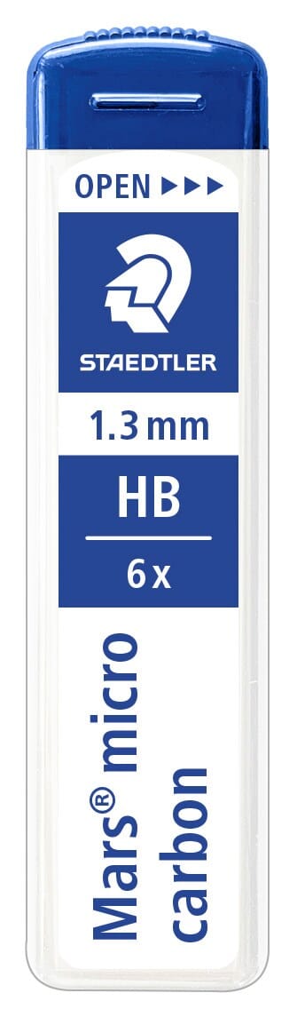 Mars Micro Carbon-blyene fra Staedtler® gir pene, presise og fyldige strøk og er ideelle til illustrasjoner i tillegg til vanlig skriving. Det fleksible materialet gjør blyene knekkbestandige, samtidig som de gir fine strøk uten PVC eller andre myknende ingredienser. Med Mars Micro Carbon-blypåfyll fra Staedtler® får du et jevnt og fint resultat når du skriver og tegner.