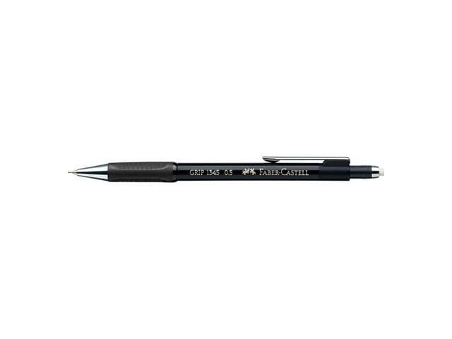 Trykkblyanten Faber-Castell GRIP 1345 bruker bly på 0,5 mm som kan trekkes inn, og er ideelt for finskrift, og har et gummigrep som er sklisikkert.