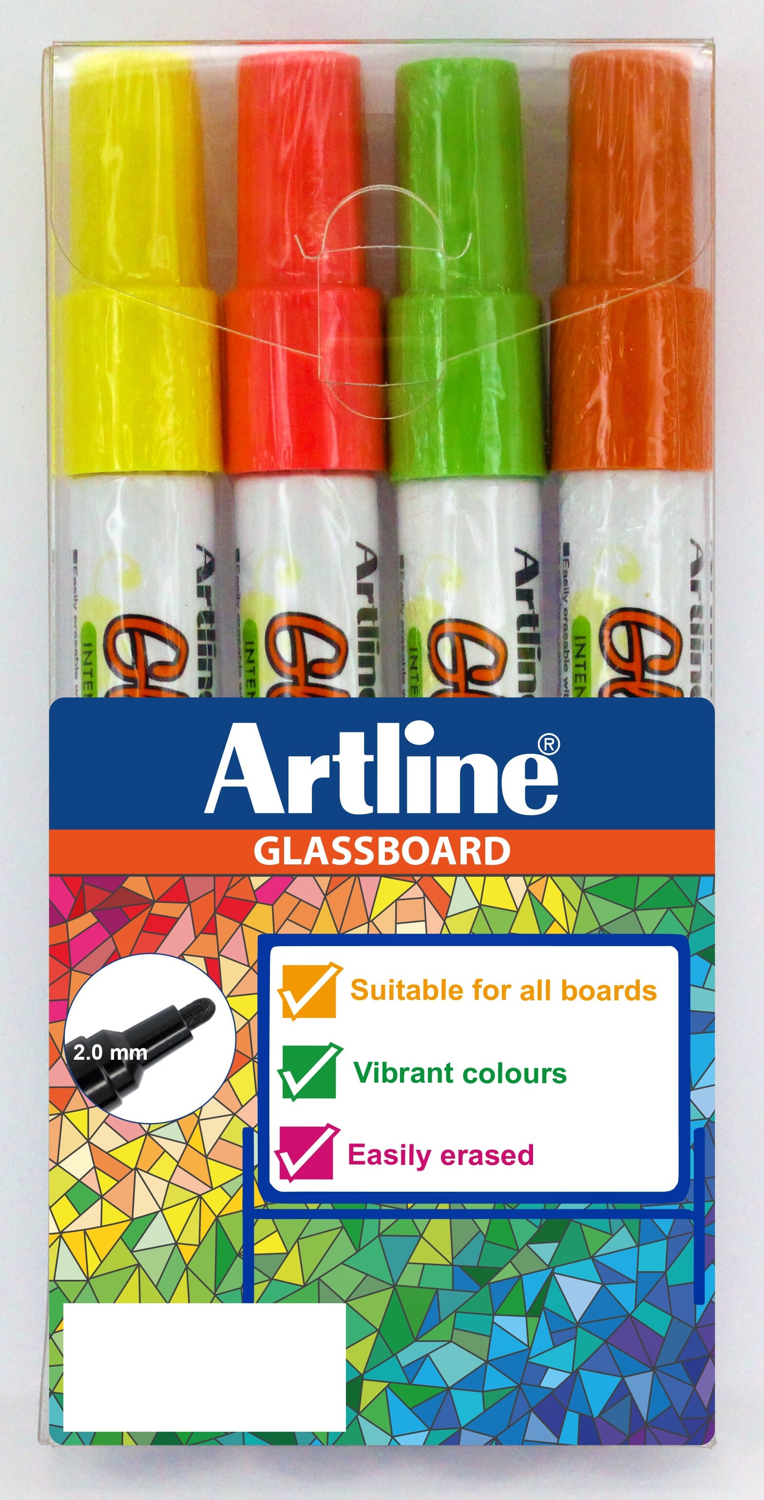 Artline Merkepenn For Glasstavle, Sett Nr,2, 4 farger/Etui