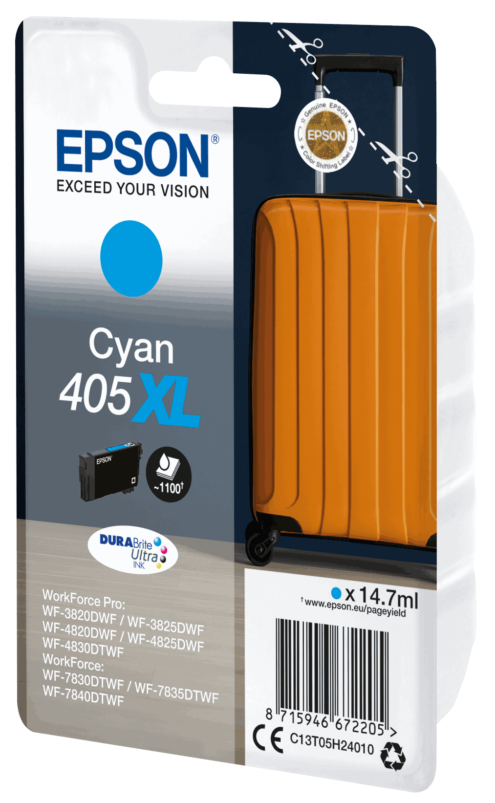 T405 Cyan XL Ink 14,7 ml For Epson Workforce WF-3820DWF/WF-3825DWF/WF-4820DWF/WF-4825DWF/WF-4830DTWF/