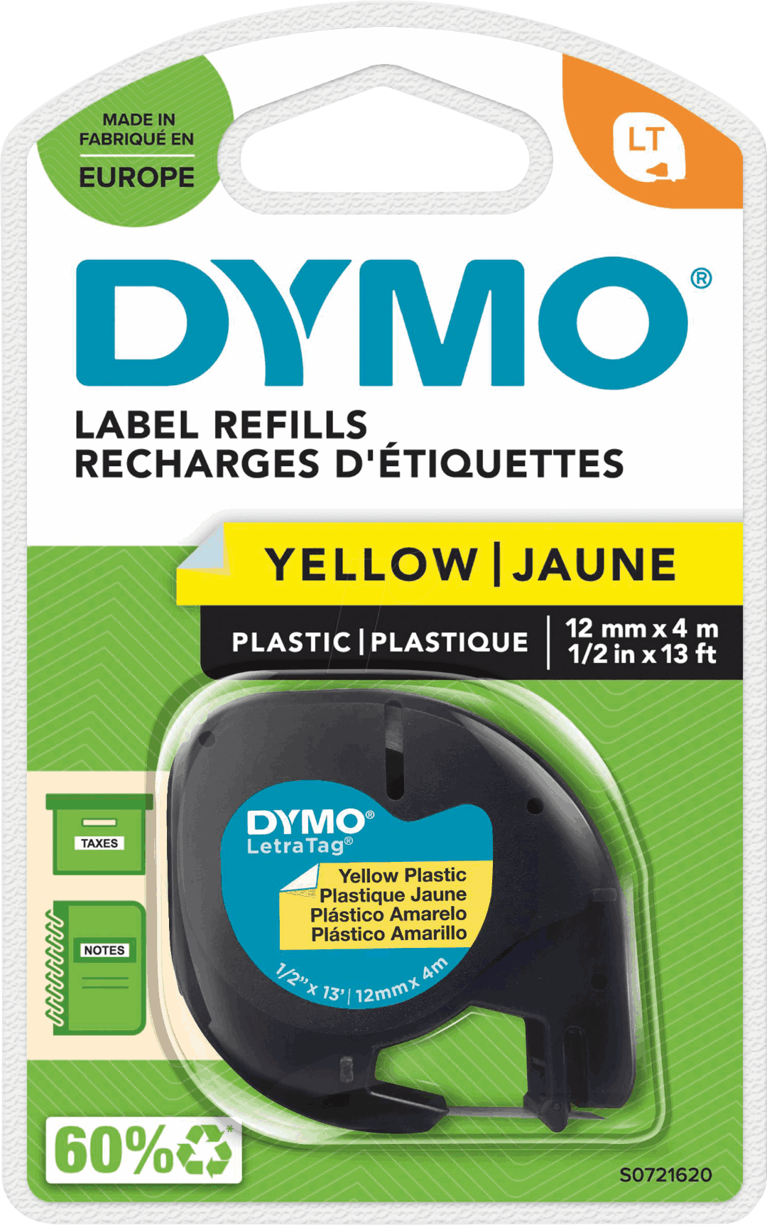 Tape Dymo Letratag plastic 12mmx4M Yellow