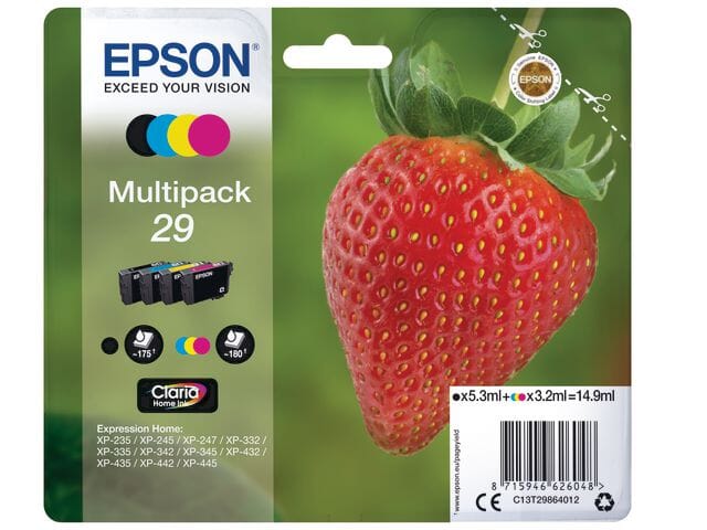 Epson 29 blekk i flerpakning er et økonomisk alternativ for fyldige dokumenter og bilder med mørkeromskvalitet.