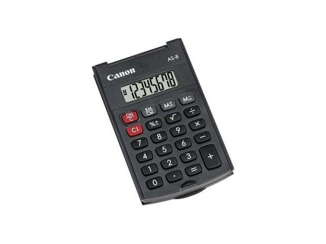 KalkulatorAS-8 er kompakt og stilige håndholdte kalkulatoren med åtte siffer har smart buet design og et solid deksel som kan vippes rundt 360 grader.