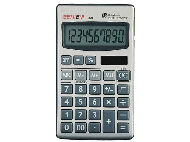 Enkel lommekalkulator i klassisk design med 10 siffers display