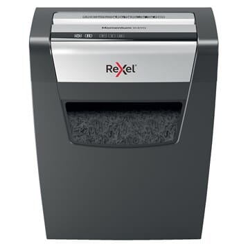 Makuleringsmaskinen Rexel Momentum X410 makulerer opptil ti ark samtidig. Det er plass til opptil 225 ark i skuffen, og den uavbrutte betjeningsmodusen krysskutter papirene på 6 minutter, slik at du kan spare tid. Den stillegående ytelsen gjør at den er utmerket for ethvert hjemmekontor eller kontormiljø. Makuleringsmaskinen gjør hele ark om til biter på 4 x 28 mm, så du vet at informasjonen din er trygg.
