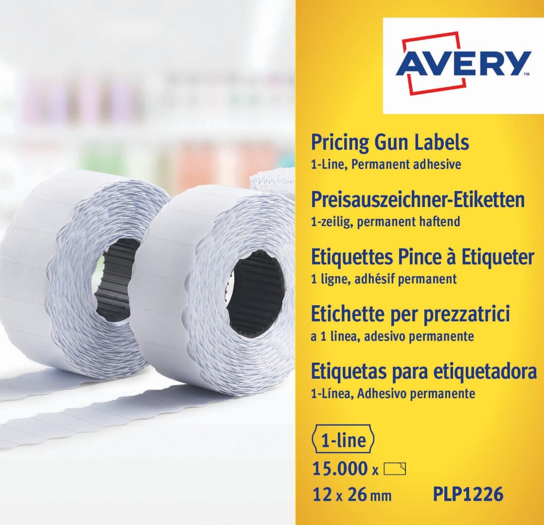 Etikettstørrelse 26 x 12 mm. Prisetikettene har den tradisjonelle prismerkeformen, og de har en sikkerhetsperforering som hindrer manupilasjon av merket. Det er plass til maks. åtte alfanumeriske tegn på etiketten. Pakken inneholder 10 ruller á 1500 prisetiketter, totalt 15 000 etiketter.