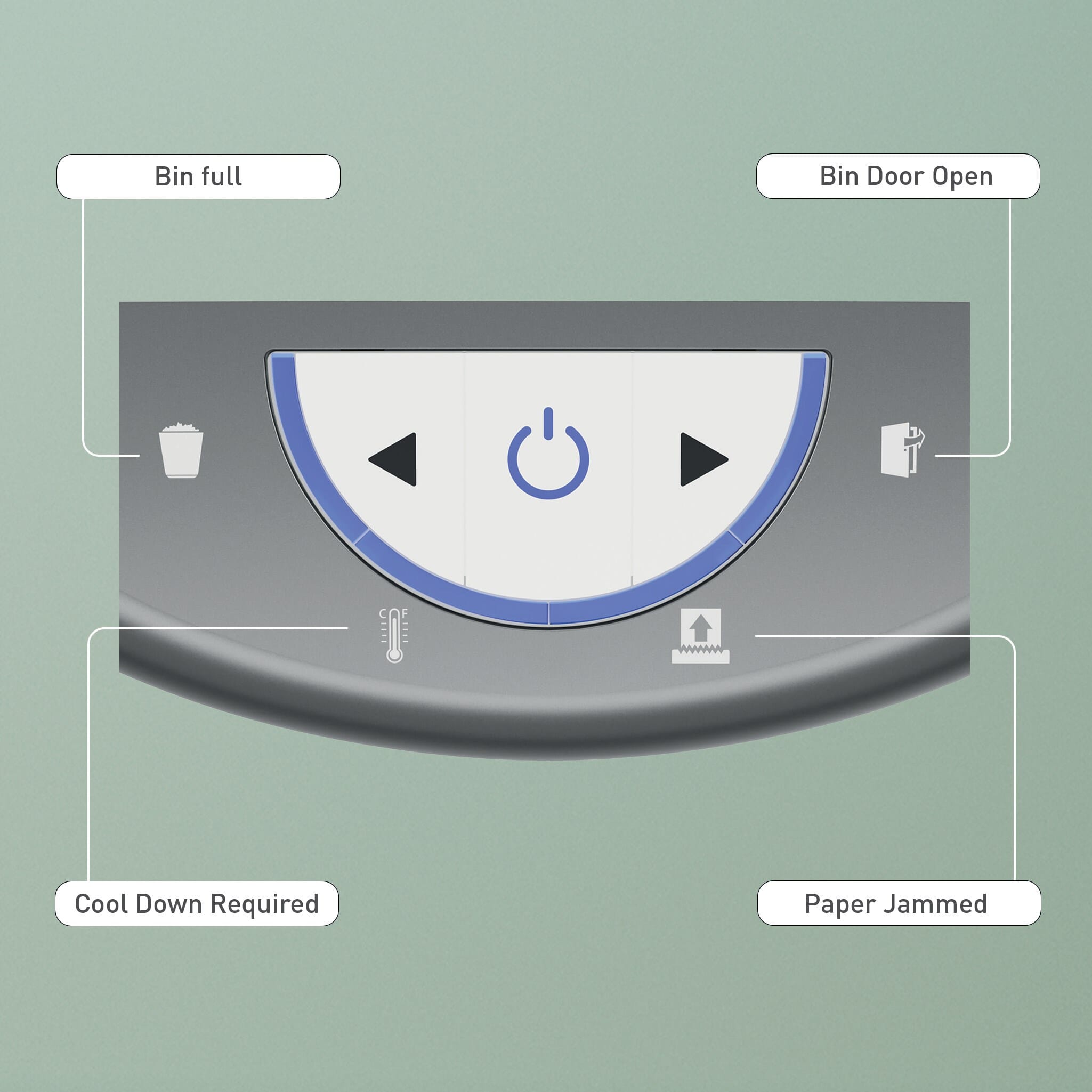 Hindrer toppdannelse – muliggjør makulering av ca. 70 ekstra A4-ark før tømming.