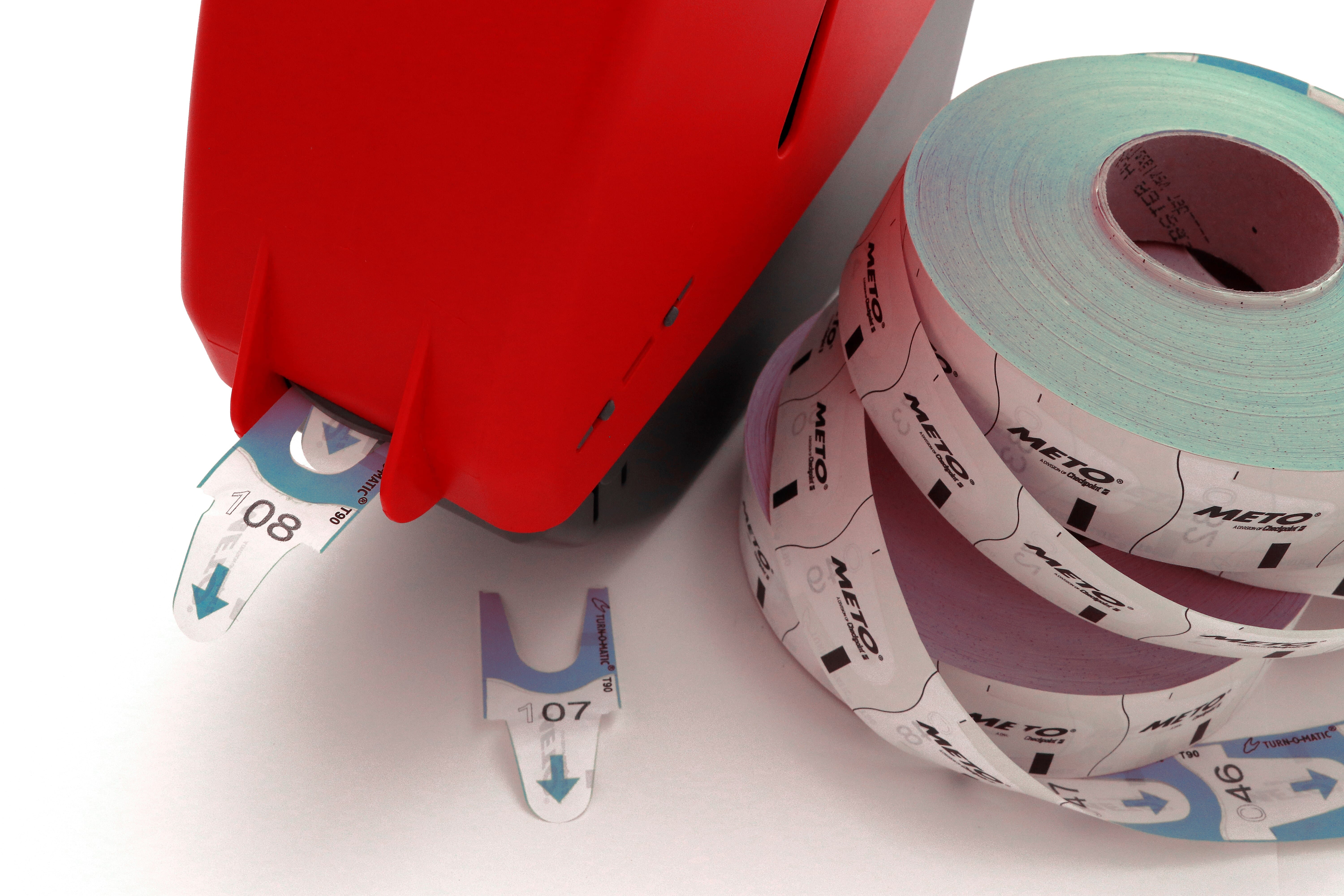 METO købilletter T90, varenr. 39649150, er originalt tilbehør til METO Turn-O-Matic Classic-dispenser, D900. Købilletterne er blå og har tresifrede, kontinuerlige sorte numre fra 000 til 999. Det er fire nummerserier per rull. Billetrullen skiftes enkelt og greit og billettene fremføres sikkert i billettdispenseren. Videre har billettene en sensormerking på baksiden for enkel fremføring. De er lagd av papirmateriale. Pakken inneholder 6 ruller med 4000 købilletter per rull, i alt: 24 000 billetter.