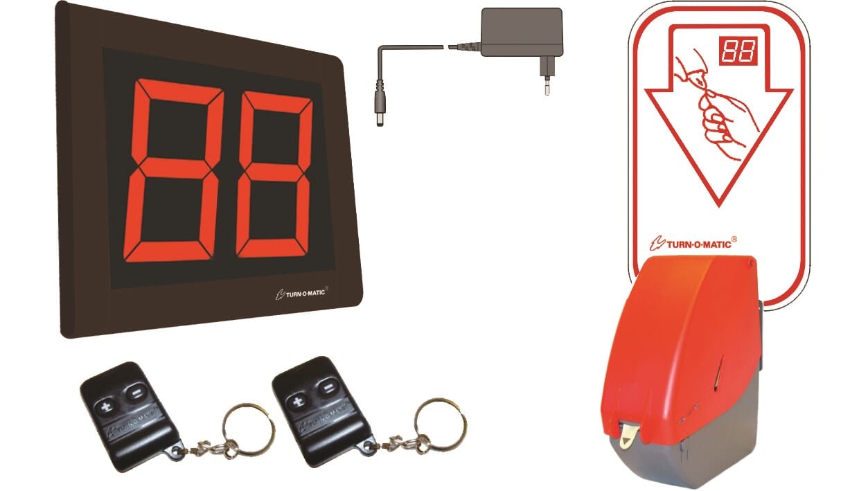 Gjør ventetiden så behagelig som mulig for kundene og oppnå høyere servicekvalitet og kundetilfredshet. Ved ankomst til køen trekker kundene en billett med nummer. De kalles opp i kronologisk rekkefølge av personalet via LED-displayet og et lydsignal, slik at kundene blir betjent raskt og i riktig rekkefølge. Siden nummeret vises på LED-displayet, kan kundene bevege seg fritt rundt i butikken og utnytte ventetiden best mulig. Dette gir også flere fordeler for personalet. Med trygghet for en effektiv håndtering av kundestrømmen kan de fokusere på service og rådgivning. Den trådløse fjernkontrollen (+/-) kan plasseres bak disken, slik at personalet enkelt kan kalle frem neste kunde. Turn-O-Matic Classic-systemet er enkelt å installere. Det krever verken Wi-Fi eller nettverkstilkobling. Systemet fungerer selvstendig og krever minimalt med vedlikehold. Startsettet som er klart til bruk inneholder: Display med trådløs mottaker Rødt LED-display med 2 sifre Kølappdispenser