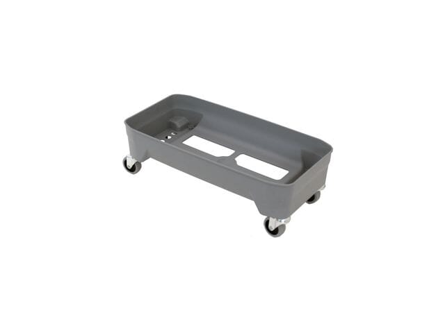 Vogn for Avfallsbeholder HYKAB Patricia 60L i formstøpt grå plast. Vognen har 50 mm gummihjul og kan kobles til andre ved hjelp av koblingssett HYKAB. - Avstanden mellom gulvet og bunnen av vognen er 76 mm.