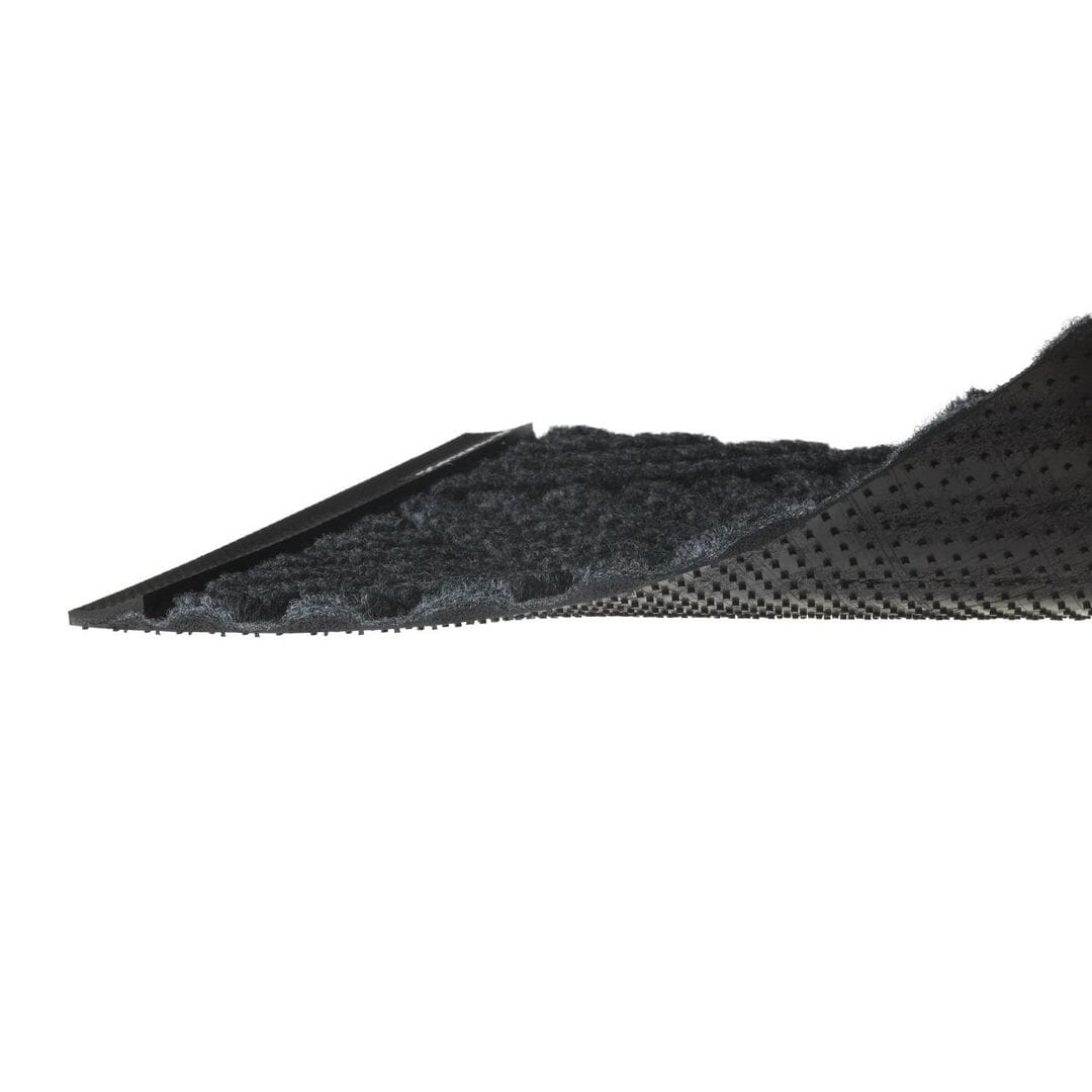 Det dyptpressede mønsteret skraper effektivt bort grovt smuss og en støpt avfaset kant rundt matten holder både smuss og vått på plass. Den egner seg i kombinasjon med ripematte i sterkt trafikkerte inngangspartier eller som enkeltmatte innendørs.