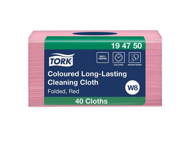 En varig og absorberende rengjøringsklut som kan brukes om igjen uten å slites. Den er tilgjengelig i fire ulike farger for å unngå kryss smitte.