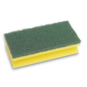 Rengjøringssvamp gul / grønn med grep. skuresvamp i nylon med slipemiddel. Brukes til grovere rengjøring.