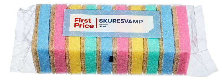 Skuresvamp med en grov og en fin overflate til regngjøring av skitne overflater. Skrubbedelen kan ripe og er uegnettil sarte materialer og overflater(f.eks teflon, emalje).