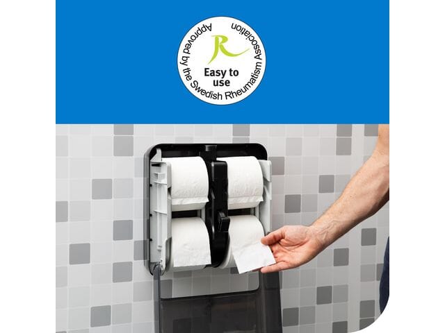 Høy kapasitet med plass til fire kompakte ruller – fyll på sjeldnere og spar tid