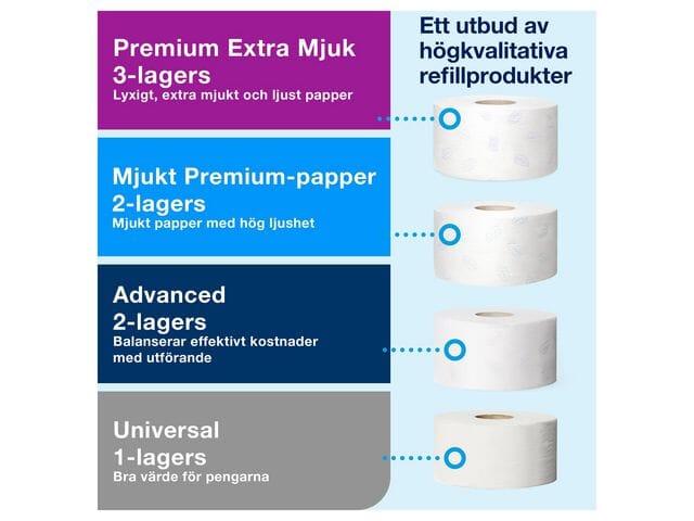 Twin-rull, enkel å fylle på, dispenseren sikrer at det alltid er papir tilgjengelig - forhindrer at det går tomt