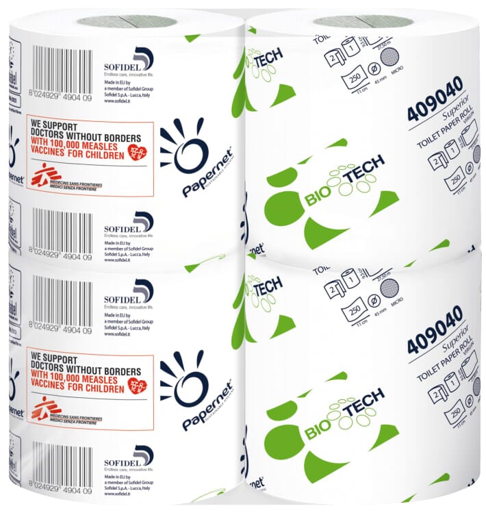HURTIGOPPLØSENDE PAPIR ( EASY FLUSH) 2-LAGS 100% NYFIBER Hurtigoppløselig toalettpapir som brukes der man har problemer med tette avløpsrør. Enzymer på papiret renser avløp for organiske rester og dermed unngår tette rør. Lettoppløselig 2-lags hvitt nyfiber toalettpapir, preging, ekstra mykt. . Anbefales til vakumtoaletter slik som ombord i båter, fly og tog. Egner seg også godt i bygninger med gamle rørsystem. 28 meter.