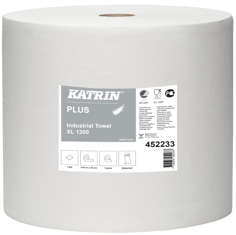 Vårt beste industripapir heter Katrin Plus, og fås i hvitt og blått (på grunn av sporbarhet). Her får du den høyeste papirkvaliteten, og du kan velge størrelse og hvor mange lag med papir du vil ha. Produktets absorpsjonsevne øker jo flere lag det har. Alt vårt Plus-papir har de riktige sertifiseringene for å kunne brukes i alle tenkelige miljøer.