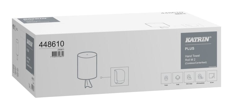 Katrin Plus Tørkerull M2 er designet for effektiv tørking av både overflater og hender. Med sin høye absorberingsevne er den ideell for raskt og effektivt å tørke opp søl og væsker. Oppfyller de høyeste kravene som stilles til offentlige storkjøkken og innenfor helsesektoren.