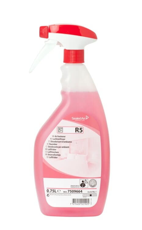 ROOM CARE R5 er en luftfrisker utviklet for å fjerne vond lukt og samtidig etterlate en frisk duft i rommet. Spray i rommet, og etterlat duften av et nyvasket rom.