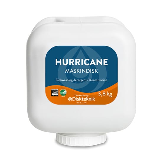 Hurricane Grov er et høykonsentrert alkalisk og effektivt maskinoppvaskmiddel for automatisk dosering. Produktet er fosfatfritt og egnet for alle vannhardheter. Tar vanskelige avleiringer av fett og stivelse og holder effektivt unna kalkavleiringer på servise og i oppvaskmaskin. Passer til alle typer oppvask inkludert aluminium, lettmetall, kobber og messing. Spesielt egnet for korrosjonsfølsomme metaller, grovvask og granulmaskiner. Inneholder effektiv metallbeskyttelse som motvirker korrosjon.