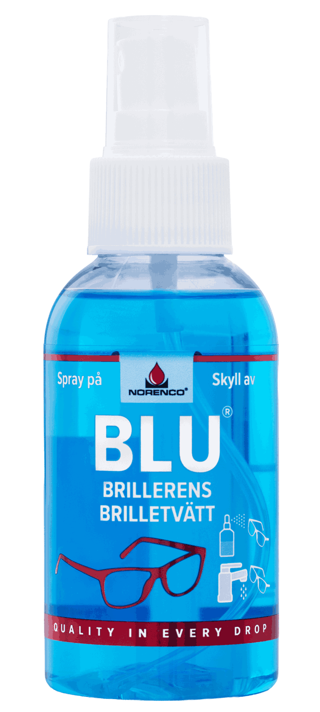 Den mest skånsomme måten å rengjøre brillene på – spray på og skyll av med kaldt vann.