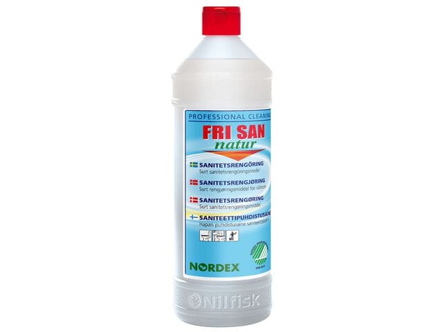Med dette Nordex Fri San Nature-rengjøringsmiddelet får du styrken til et profesjonelt, universalt rengjøringsmiddel i ditt eget hjem. Du kan trygt bruke Nordex Fri San Nature hver dag, enten du rengjør sanitærutstyr, fliser eller toalettseter. Gi flatene polish og glans igjen uten å risikere skade på finishen. Dispenser i henhold til anvisningene. La det virke i noen minutter, og vask av med en klut eller børste. Skyll grundig. - Sanitært rengjøringsmiddel - Flere bruksområder sparer tid og penger - Ideell for bruk på sanitærutstyr, fliser og toalettseter - Sterkt nok til å takle store prosjekter - Sertifiseringer: Svanemerket - Volum: 1 liter - - Fare- og sikkerhetsinformasjon: - H319 Gir alvorlig øyeirritasjon.